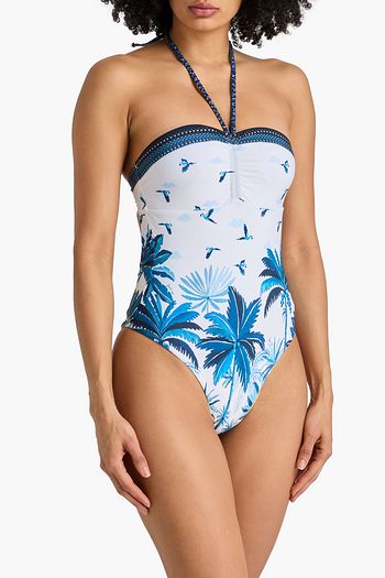 Embellished printed halterneck swimsuit