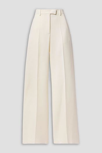 Pleated embellished cotton-blend corduroy straight-leg pants