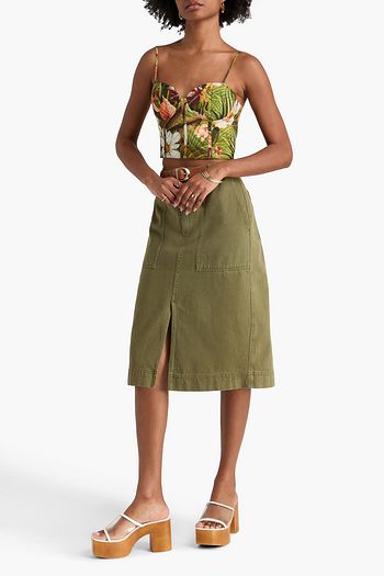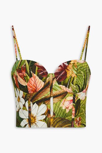 Moringa Clementina cropped pleated floral-print linen bustier top