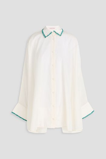 Bead-embellished silk-organza top