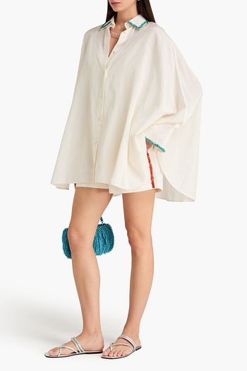 Asel embroidered silk-twill top