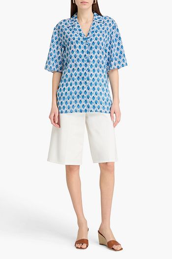 Pussy-bow printed silk-twill top