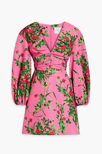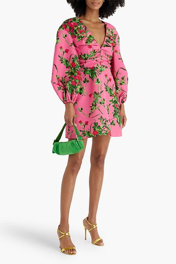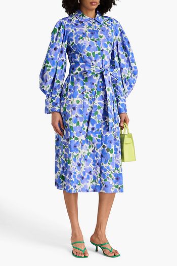 Floral-print cotton-blend poplin mini shirt dress