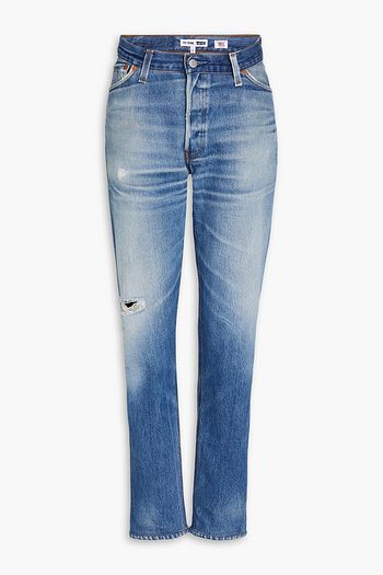 Distressed faded high-rise straight-leg jeans