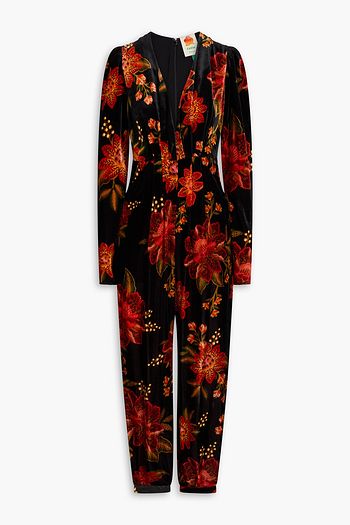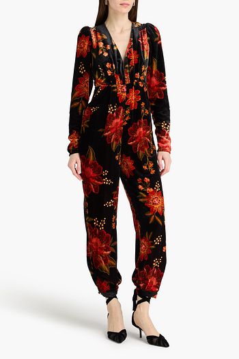 Draped floral-print chenille jumpsuit