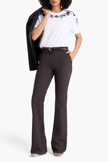 Crystal-embellished embroidered cotton-jersey T-shirt