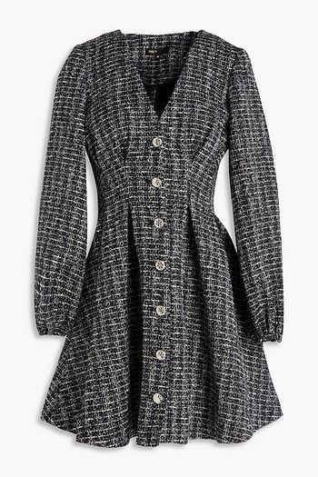 Embellished wool-blend twill mini dress