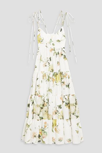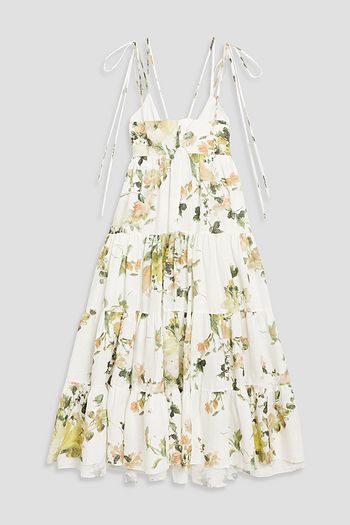 Tiered floral-print cotton-poplin mini shirt dress