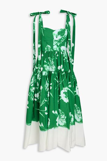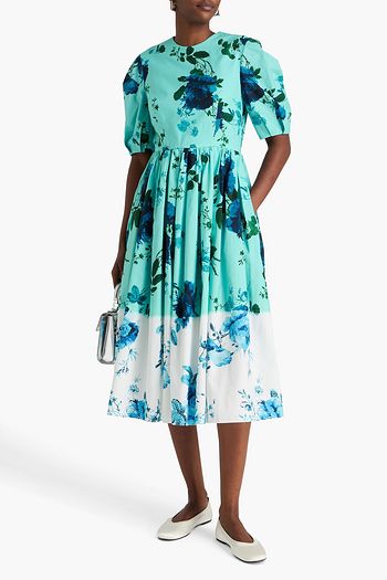 Cavendish pleated floral-print cotton-poplin shirt dress
