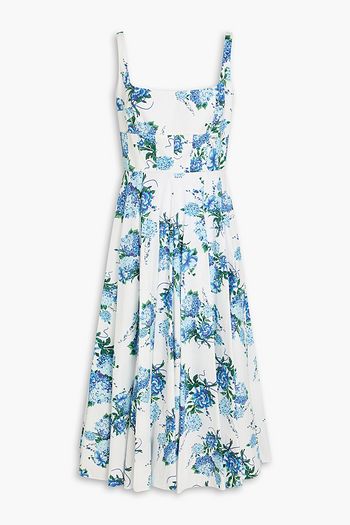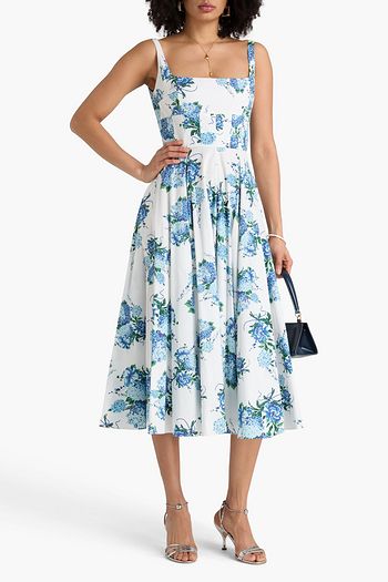 Cavendish pleated floral-print cotton-poplin shirt dress