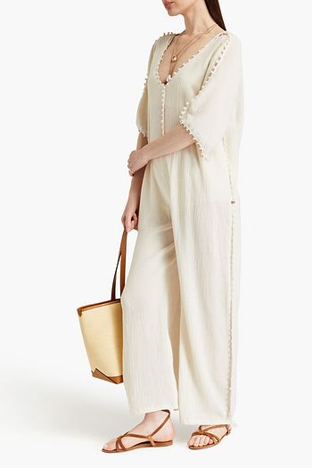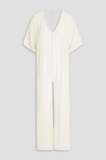 Farrah cropped linen-blend gauze halterneck top