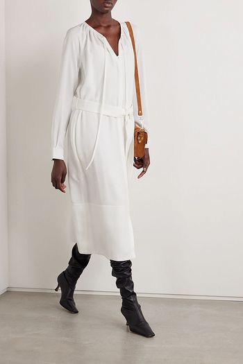 Enya belted crepe midi shirt dress