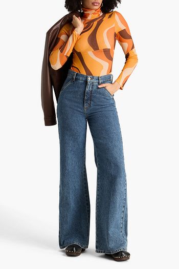 Bronted printed stretch-jersey turtleneck top