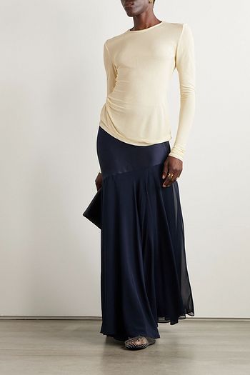 Katana cape-effect ruched silk-blend satin top
