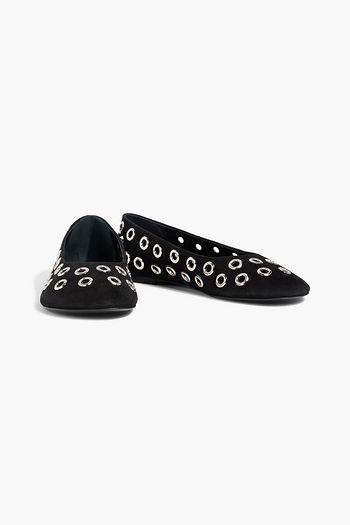 Glove eyelet-embellished suede flats