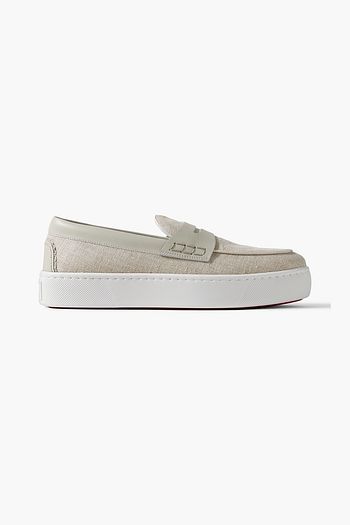 Paqueboat leather-trimmed linen-canvas penny loafers