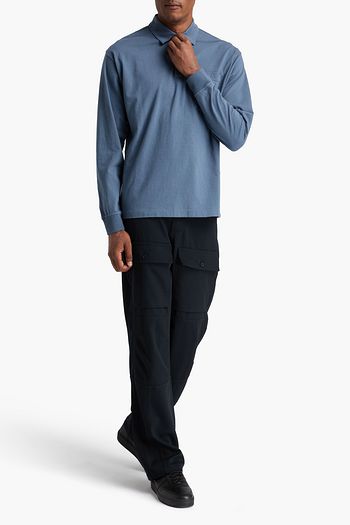 Printed cotton-blend piqué polo shirt