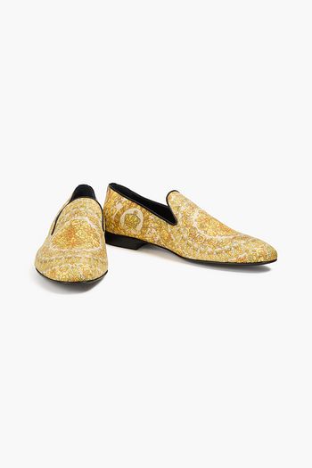 Dandy Chick grosgrain-trimmed embellished velour loafers