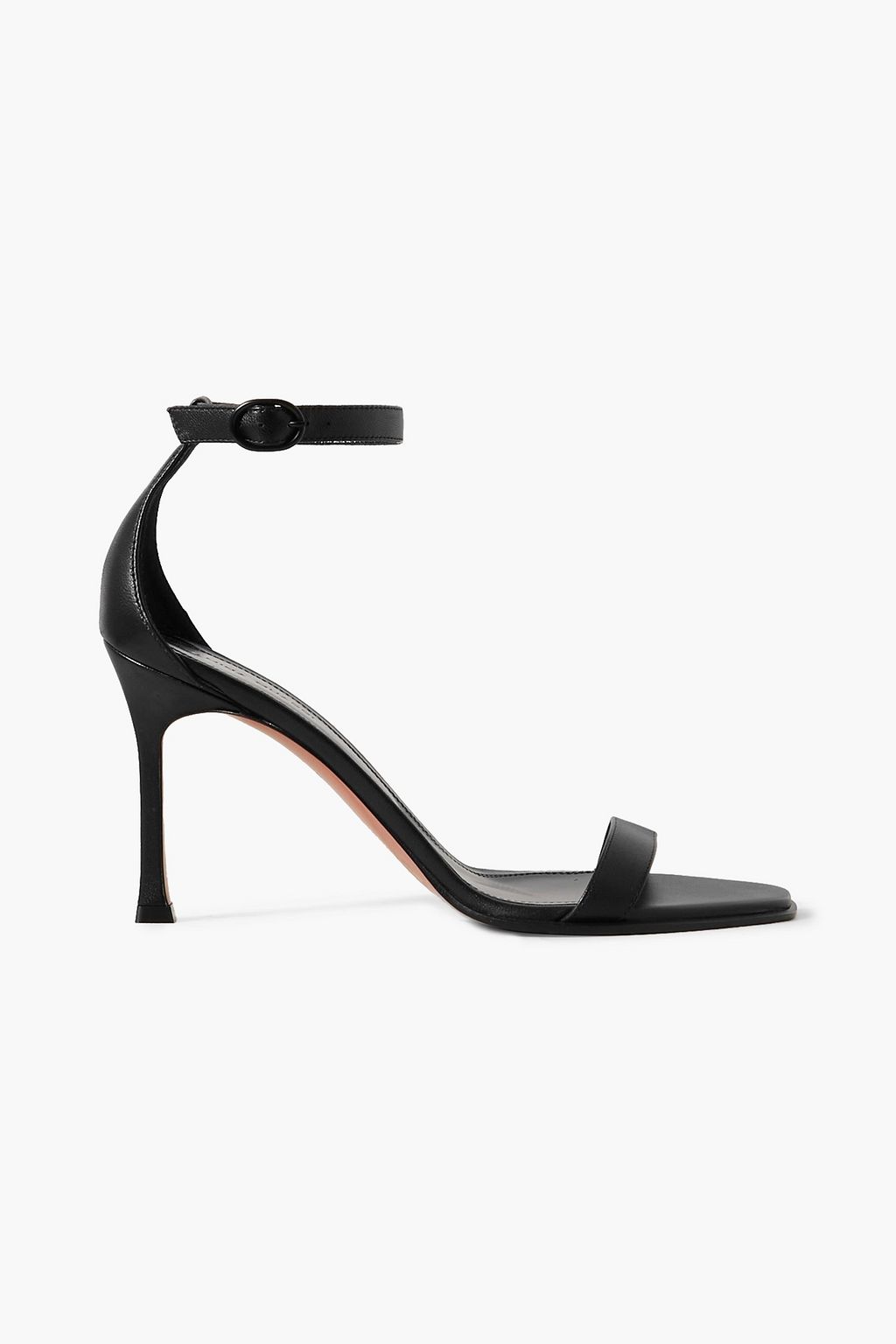 Amina Muaddi believes that shoes are "the most powerful items in fashion" and that the right pair will change the way you feel. Set on a manageable 90mm stiletto heel, these 'Kim' sandals are sculpted from smooth black leather with slim straps and an angular toe.