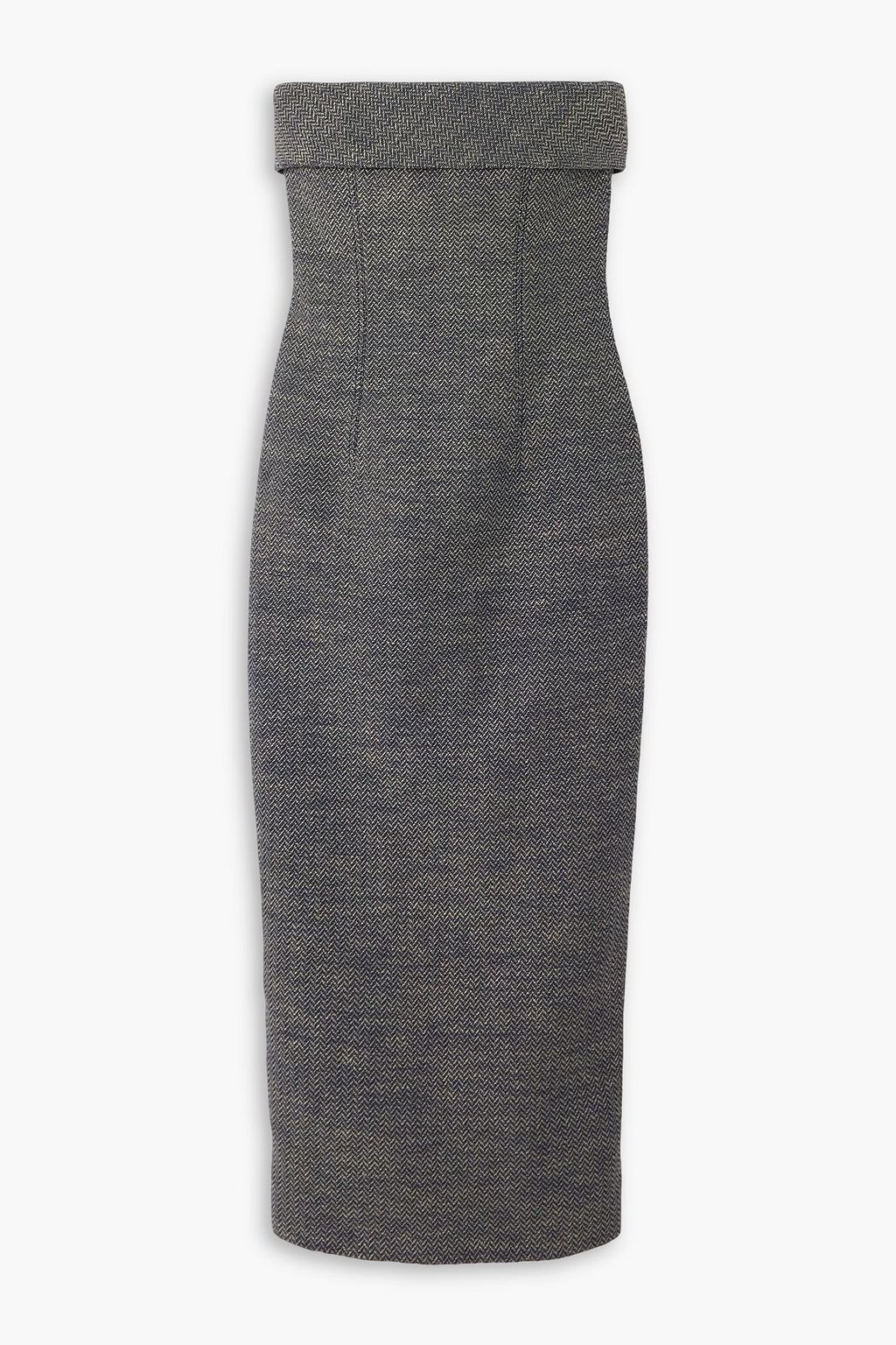 EMILIA WICKSTEAD Keeley strapless cotton and linen-blend tweed midi dress