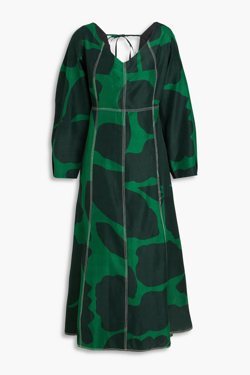 LOVEBIRDS Cutout printed washed-silk midi dress