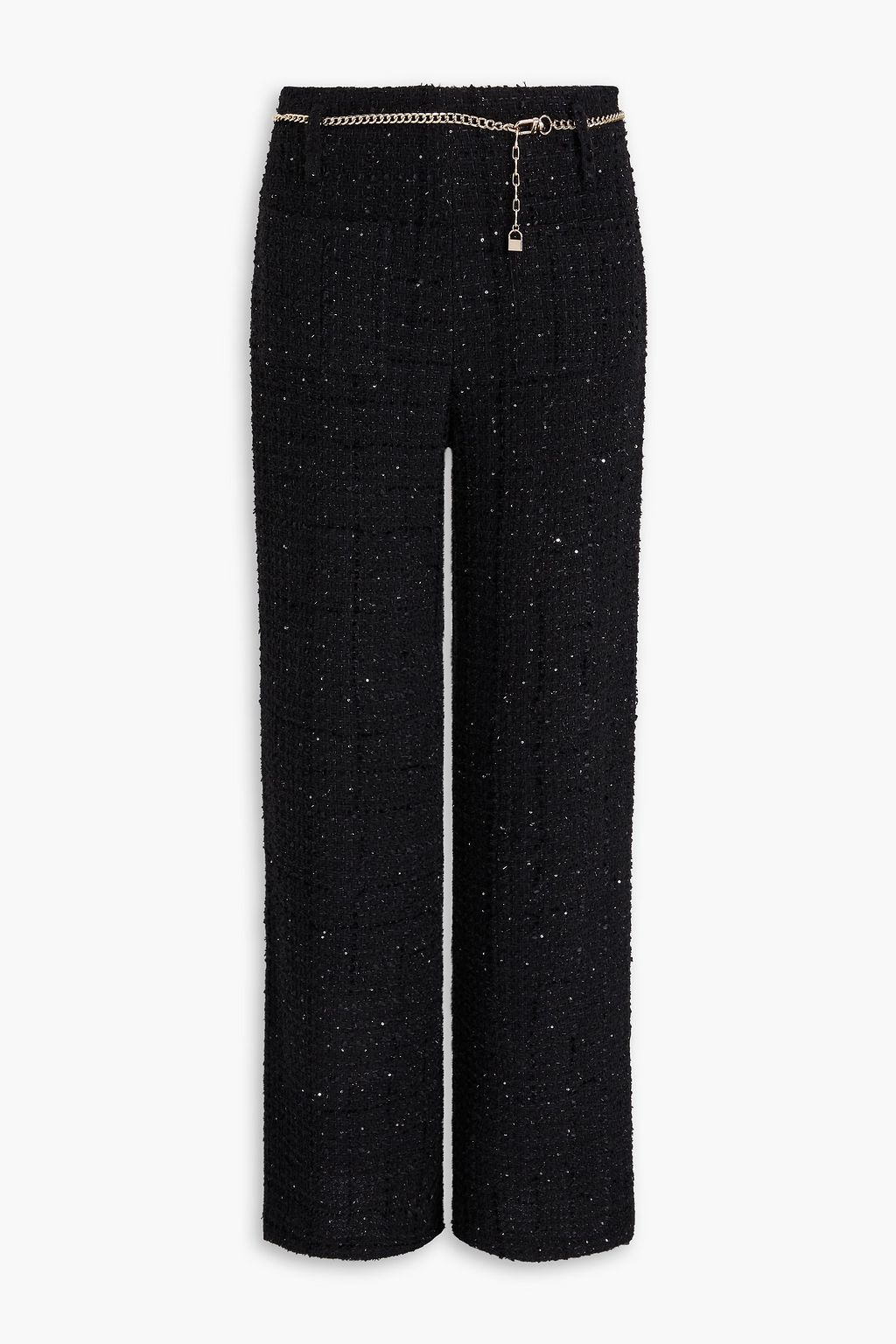 MAJE Sequined cotton-blend tweed wide-leg pants