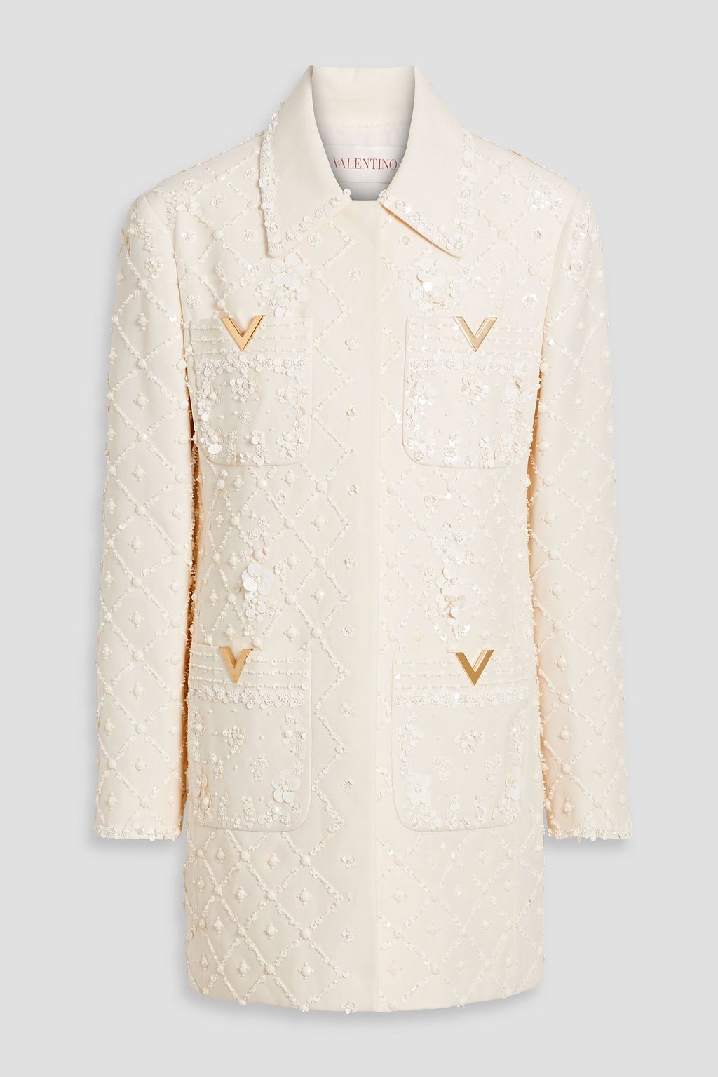 VALENTINO GARAVANI Embellished wool and silk-blend crepe coat