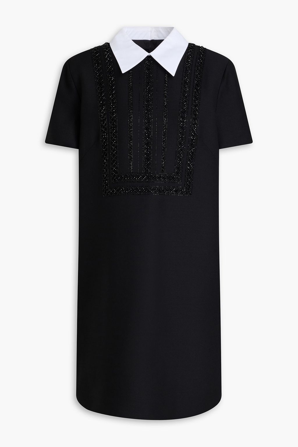 VALENTINO GARAVANI Bead-embellished wool and silk-blend crepe mini dress