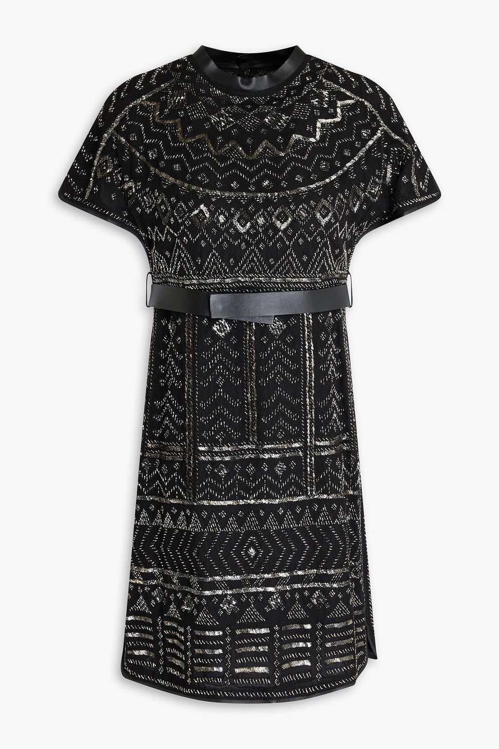 VALENTINO GARAVANI Belted embellished linen and silk-blend tulle mini dress