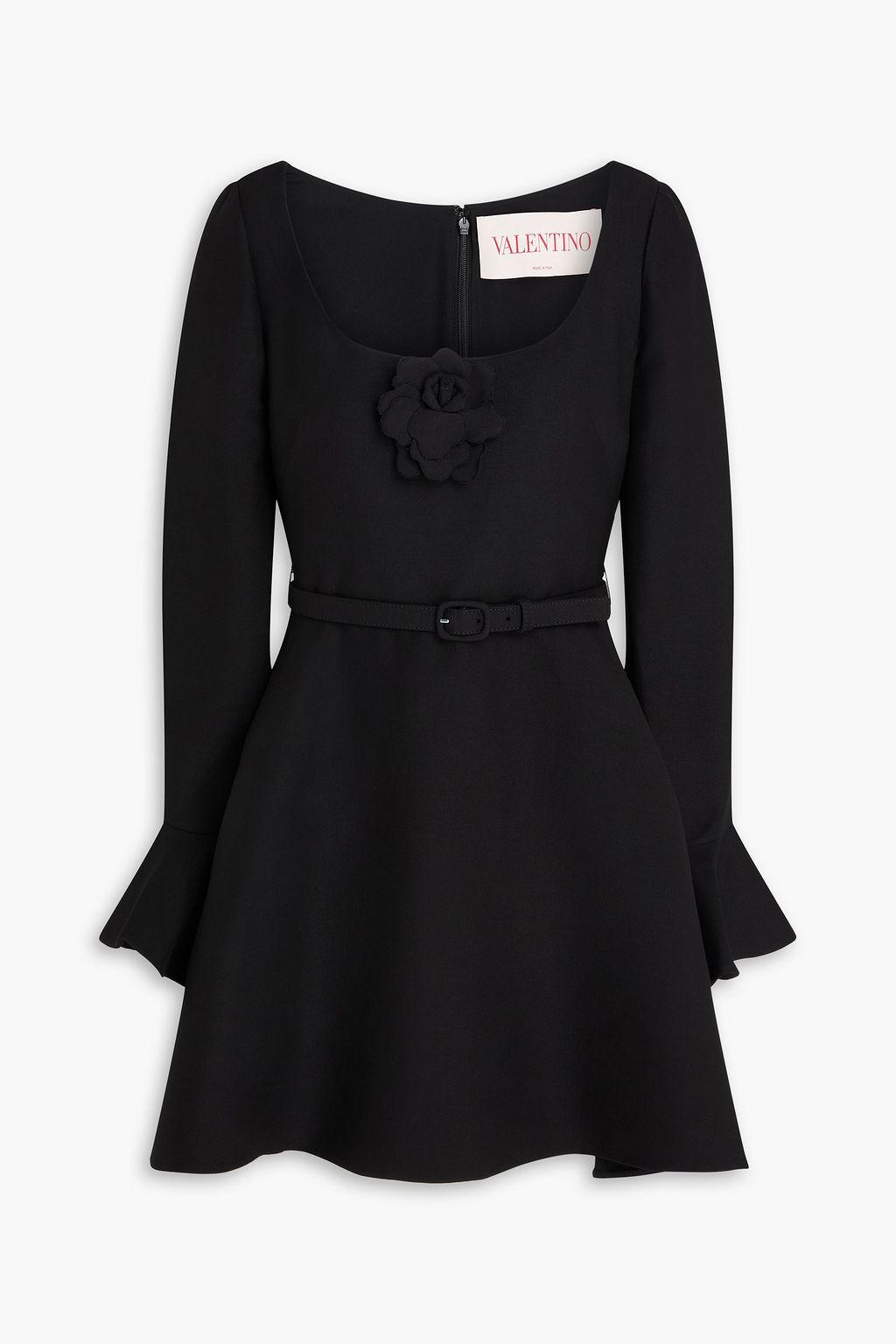 VALENTINO GARAVANI Floral-appliquéd wool and silk-blend crepe mini dress