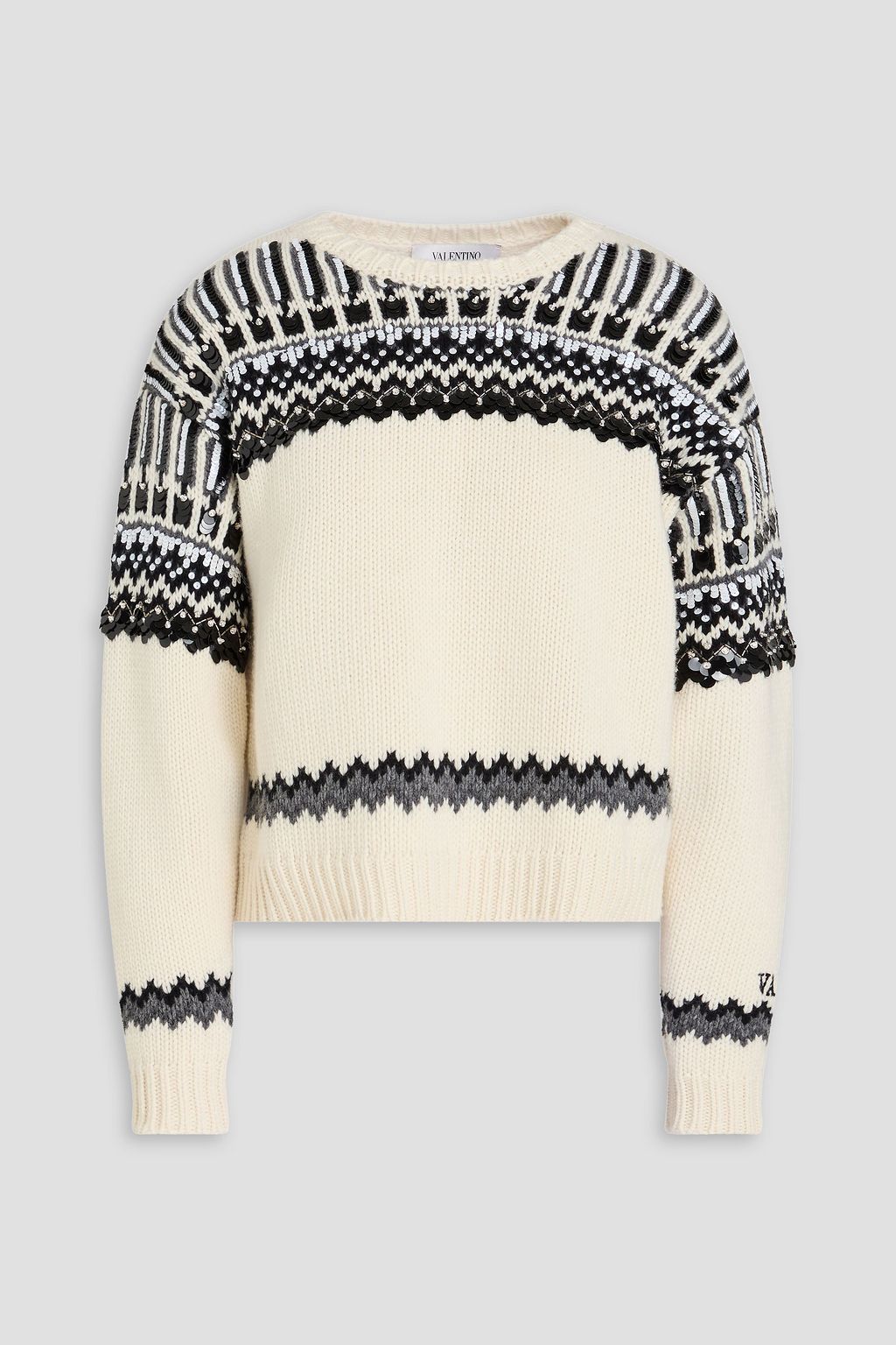VALENTINO GARAVANI Embellished jacquard-knit wool sweater