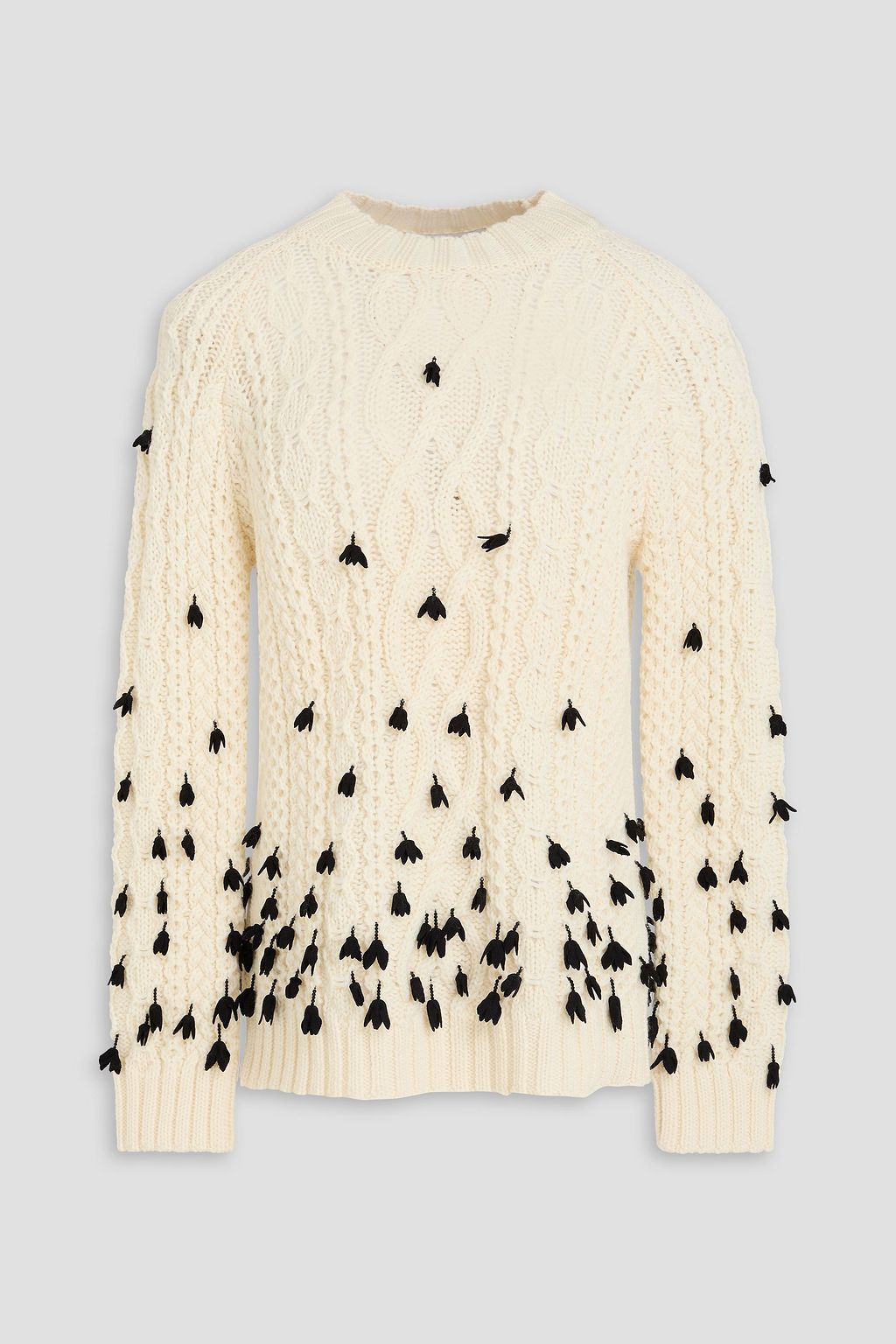 VALENTINO GARAVANI Floral-appliquéd cable-knit wool sweater