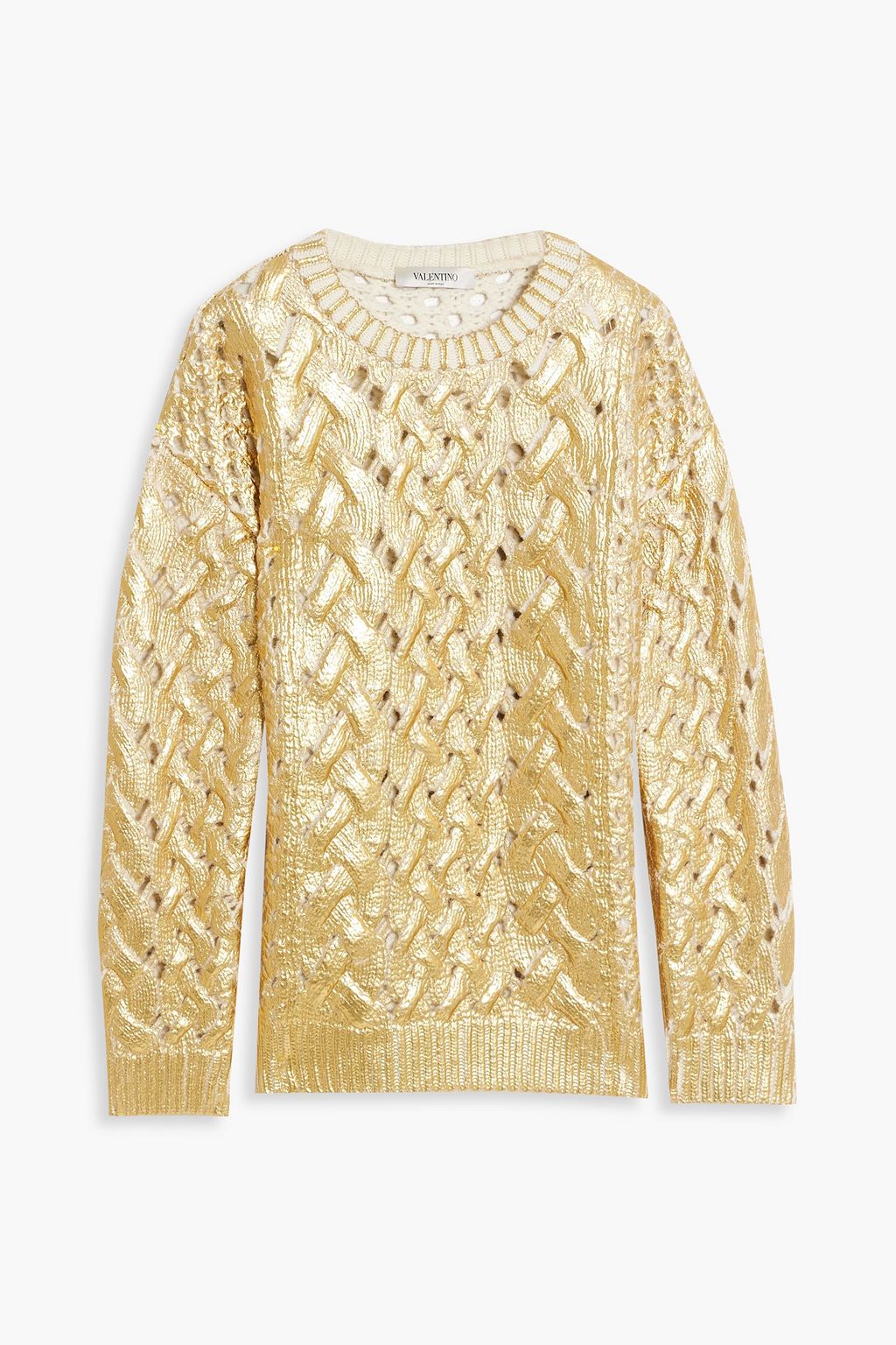 VALENTINO GARAVANI Metallic coated open and cable-knit wool sweater