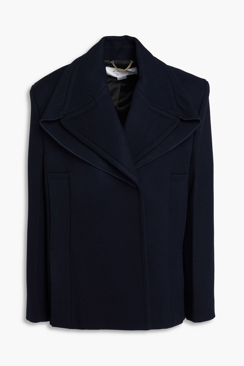 Concealed button fastening at double-breasted front
