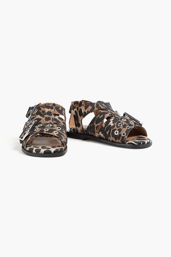 Buckled leather-blend slingback sandals