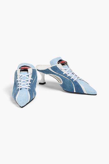 Camelia embellished denim-effect print leather slingback pumps