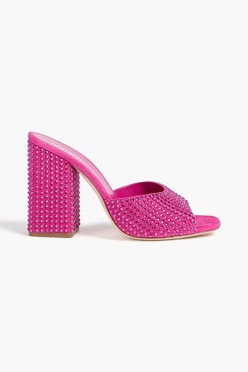 Pave Geo Bombe Miller crystal-embellished suede mules