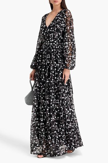 Embroidered linen-blend maxi dress