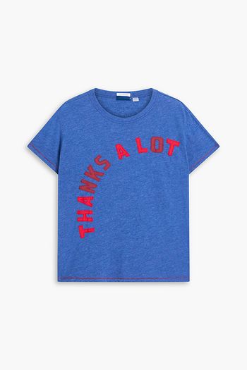 Twisted embroidered printed linen bra top