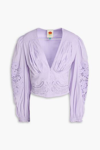 Guipure lace-trimmed cotton blouse