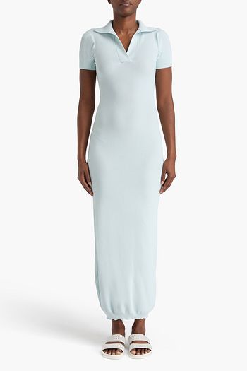 Belted leather-trimmed broderie anglaise cotton midi dress