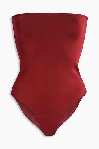 Archetypes laser-cut ribbed stretch-knit halterneck bodysuit