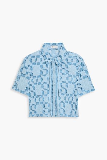 Makaia cropped crocheted cotton-blend shirt
