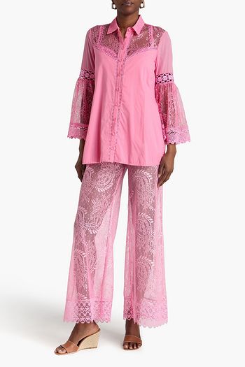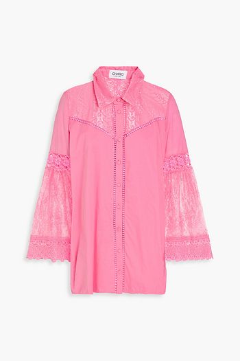 Lace-trimmed cotton-blend shirt