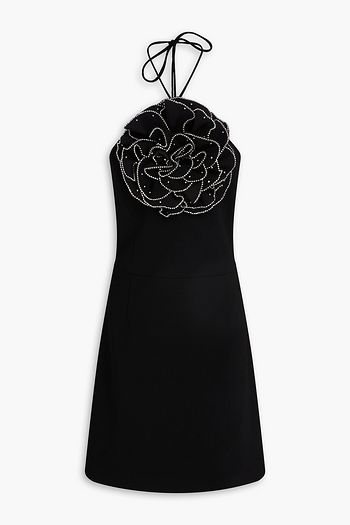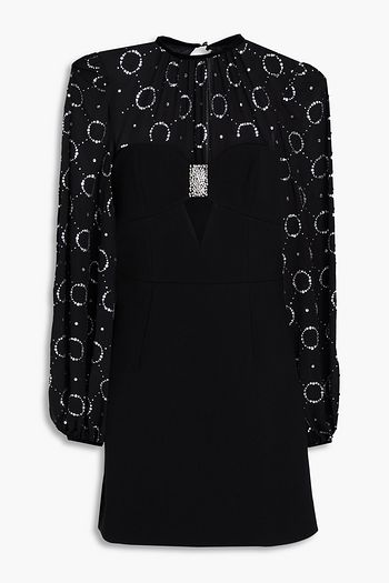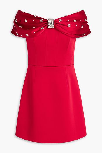 Carmella off-the-shoulder crystal-embellished satin-twill mini dress