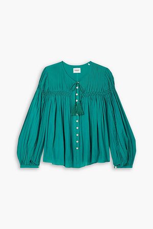 Left: Shirt, Equipment. Top, LVIR. Ring, Chloé. Jeans, Nobody Denim.