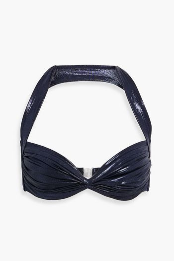 Twist-front halterneck bikini top