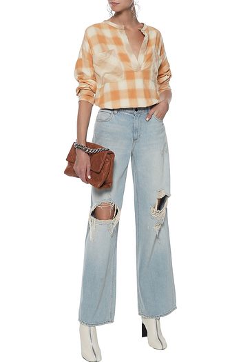 Maureen shirred checked cotton-poplin top