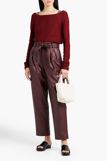 Leopard-print silk satin-paneled wool and cashmere-blend sweater