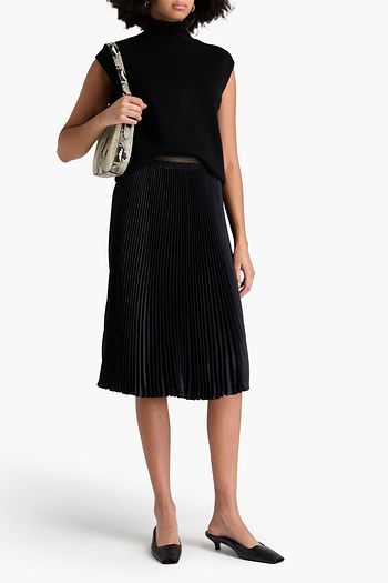 Cold-shoulder cashmere and silk-blend turtleneck sweater